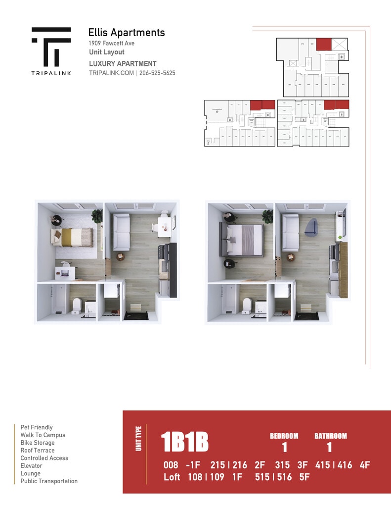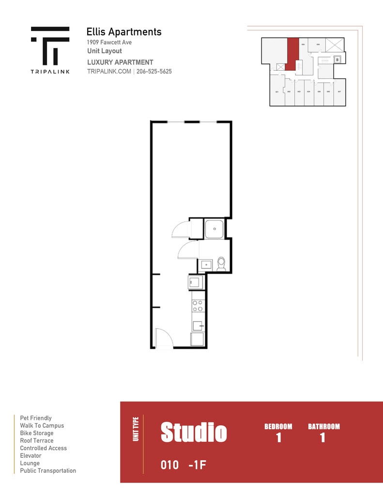 Ellis Apartments offers Studio to 1 Bedroom apartments starting from $974 and having 278–532 sq ft. Here is the current pricing and availability: