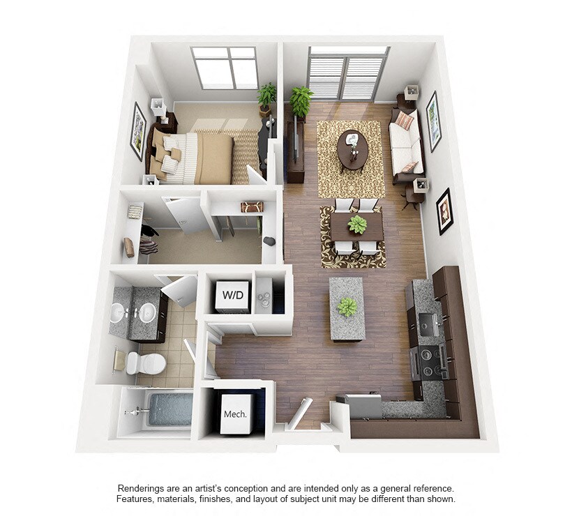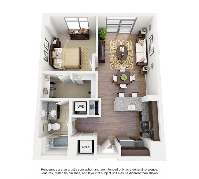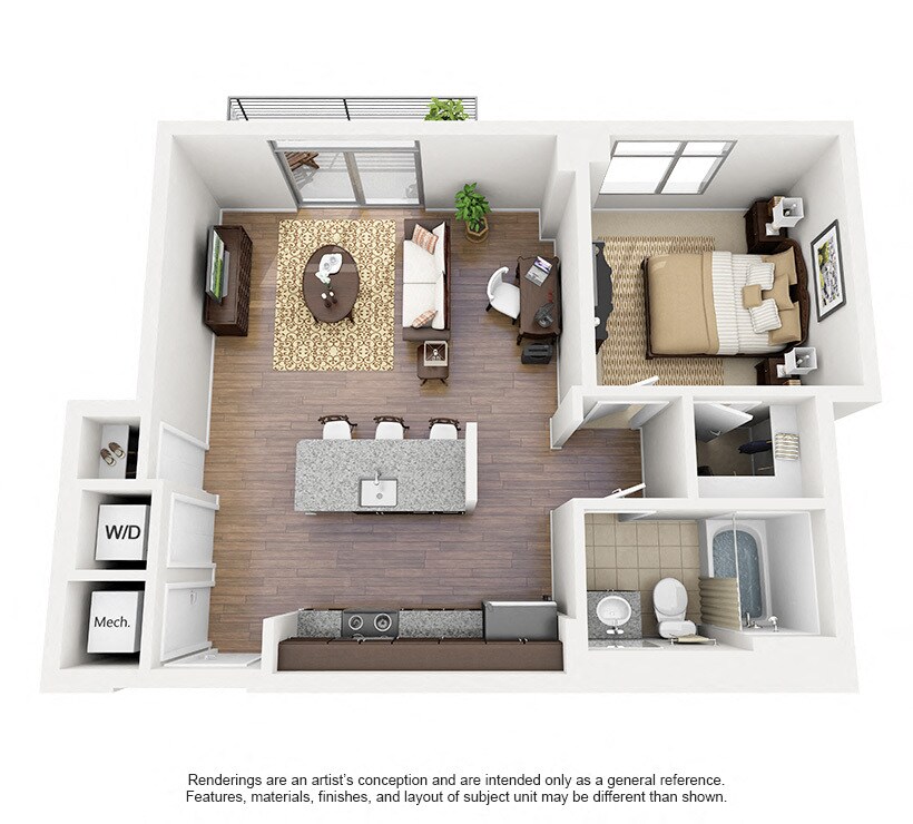 Studio, 1 Bath, 557 sq ftAvailability Details