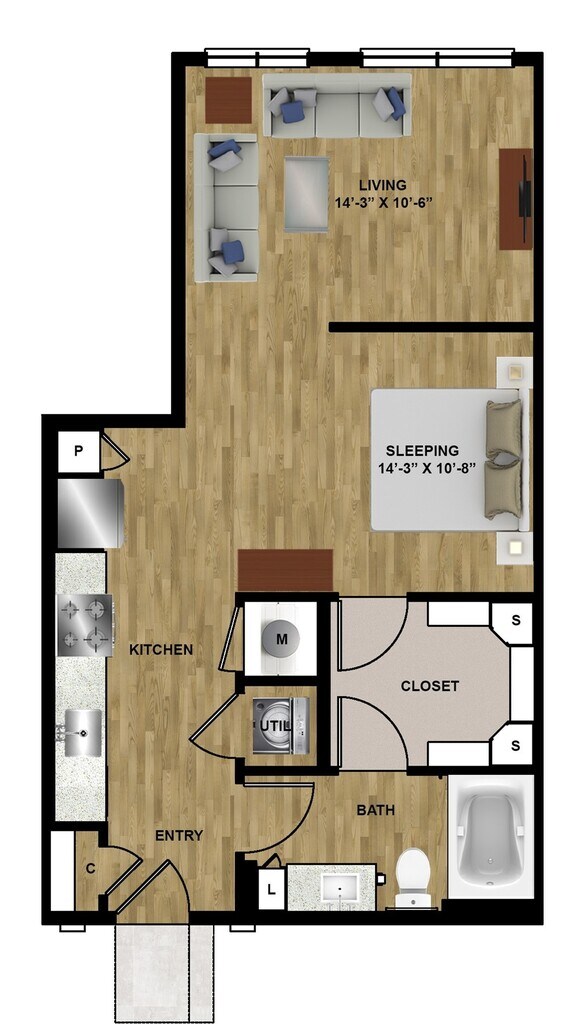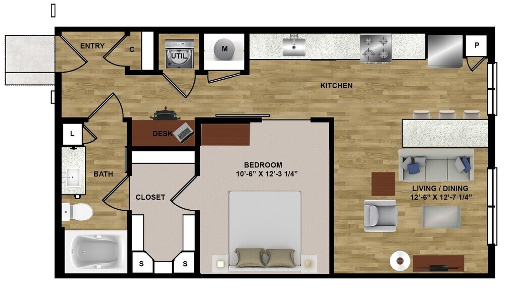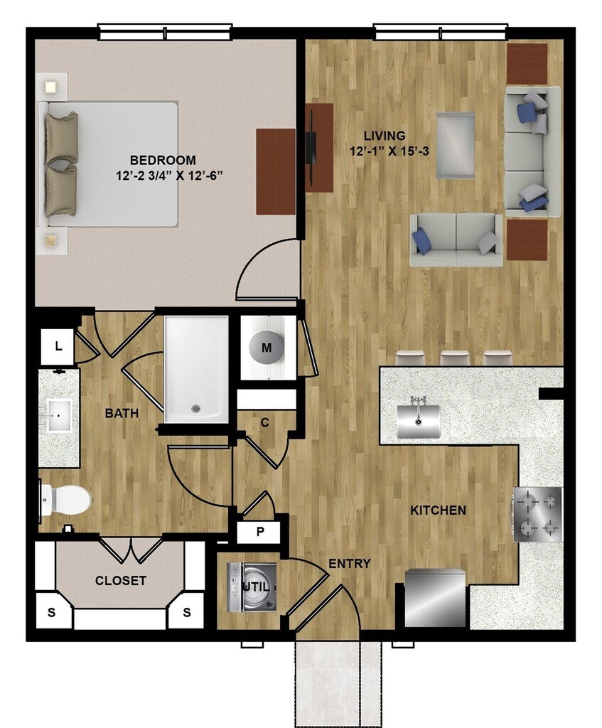 Studio, 1 Bath, 562 sq ftAvailability Details
