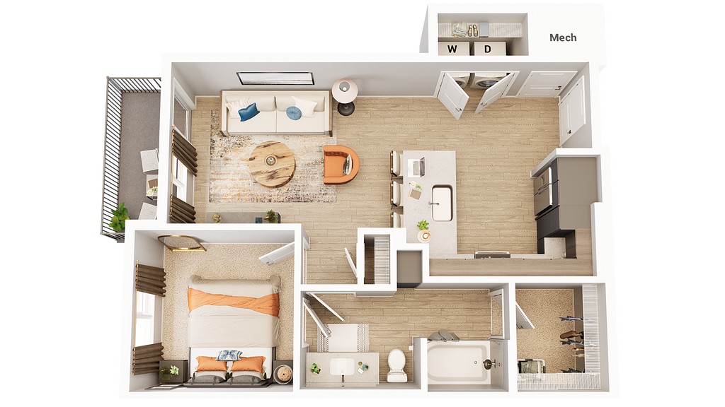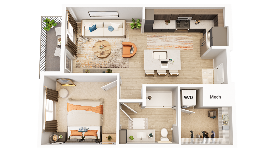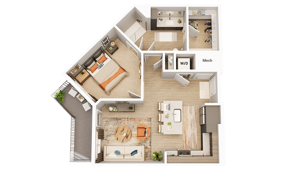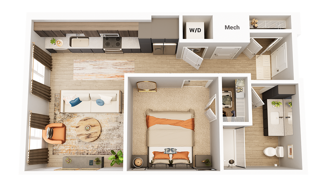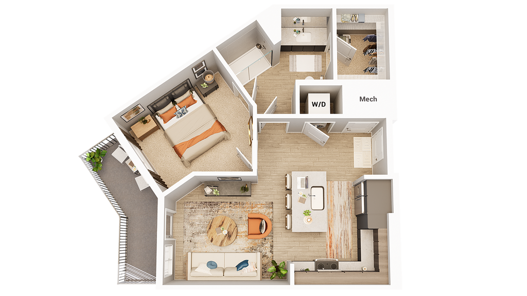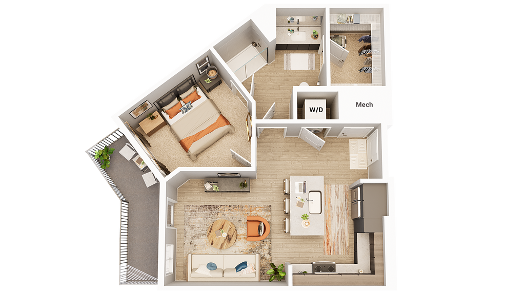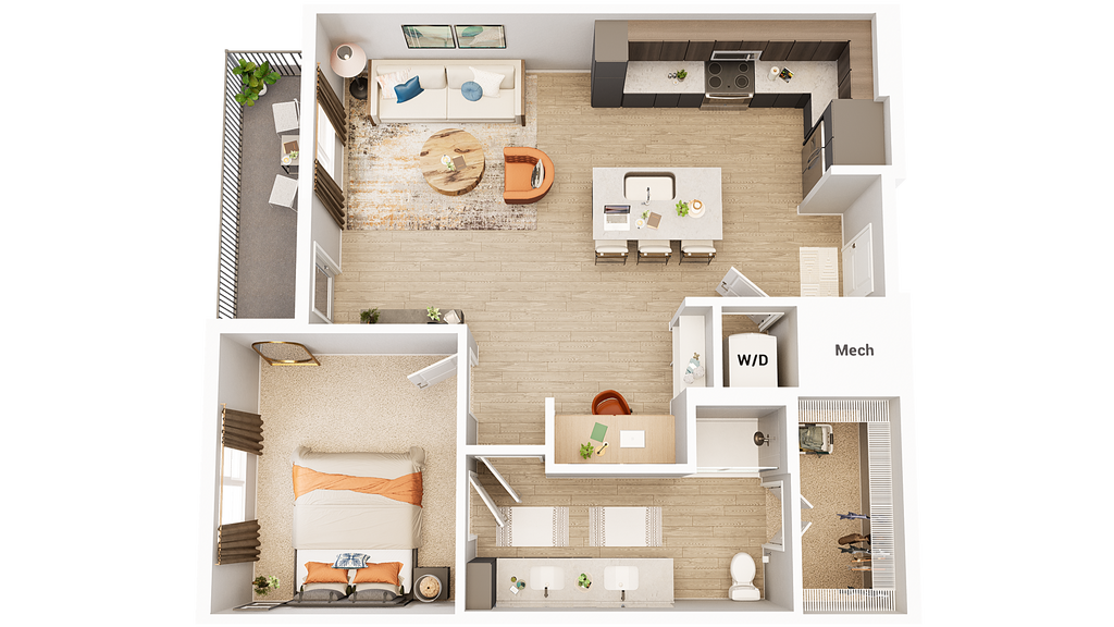 1 Bed, 1 Bath, 615 sq ftAvailable NowModel Gallery