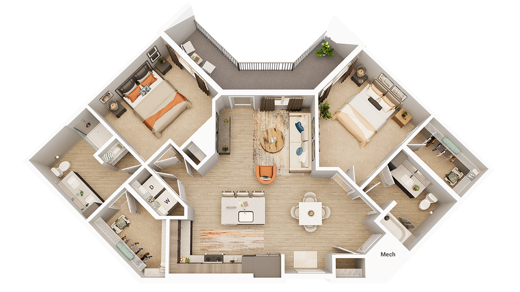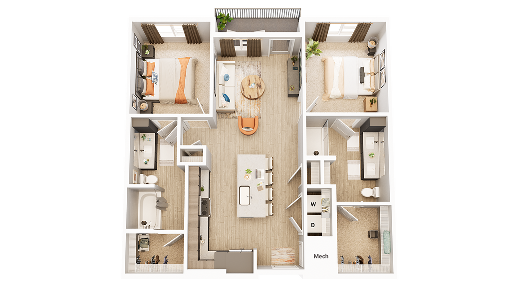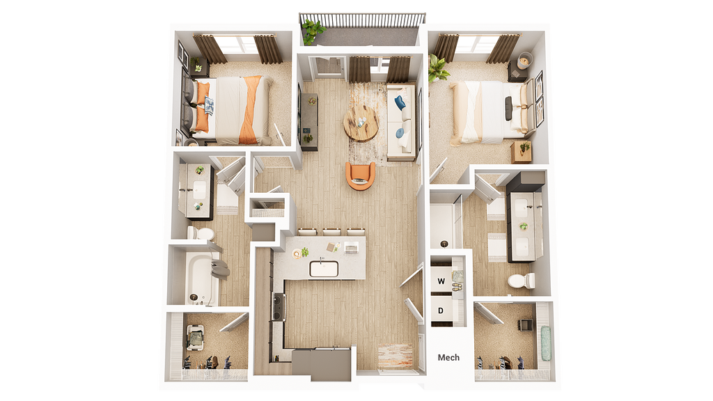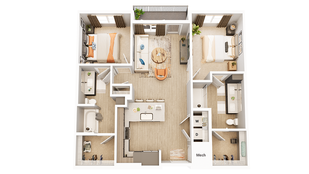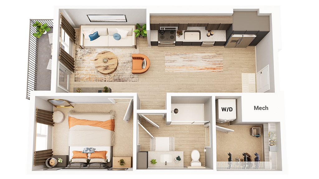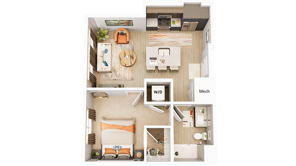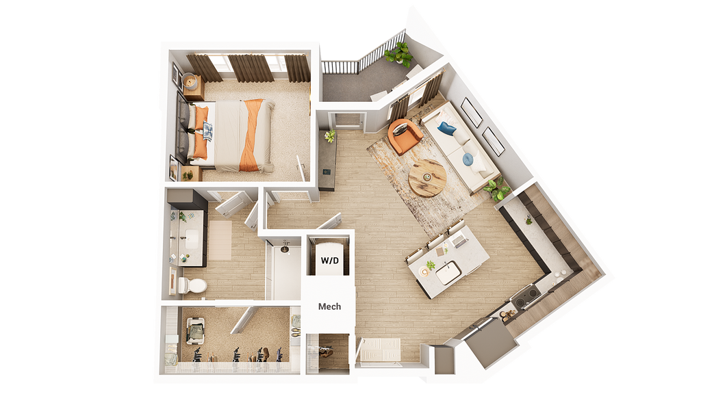 1 Bed, 1 Bath, 615 sq ftAvailable NowModel Gallery