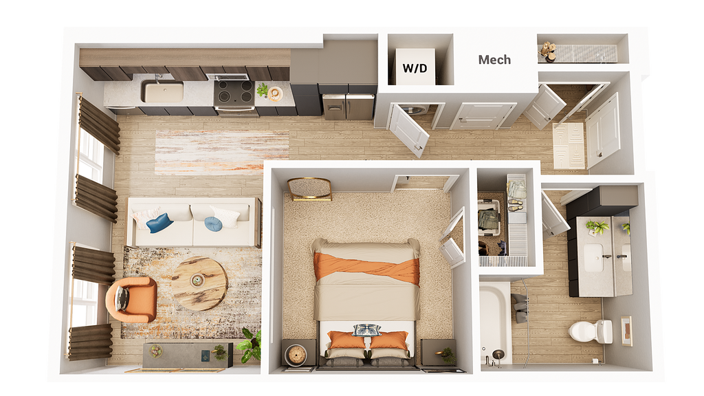 1 Bed, 1 Bath, 629 sq ftAvailable NowModel Gallery