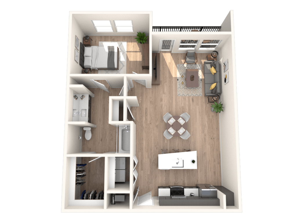 Apartment Model: E1From $1,843Studio, 1 Bath, 554 sq ftAvailable NowFloor plans are artist's rendering. All dimensions are approximate. Actual product and specifications may vary in dimension or detail. Not all features are available in every rental home. Please see a representative for details.