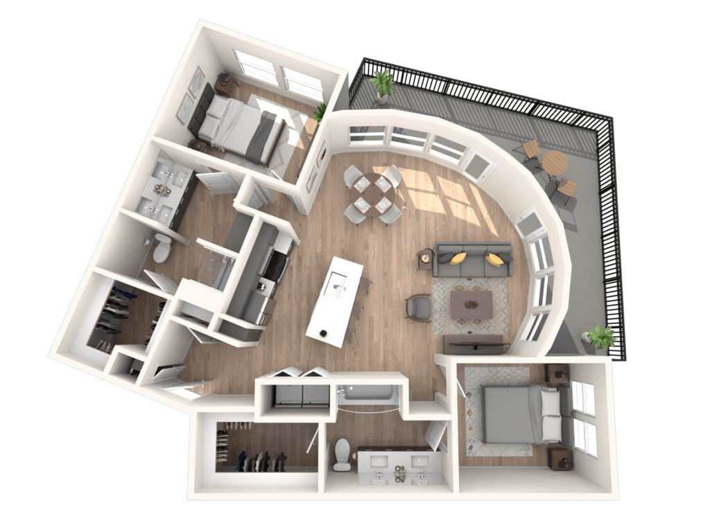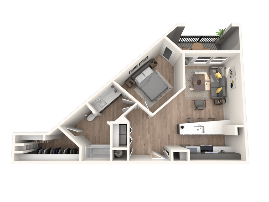 E2 - Floorplan Apartment Unit: 448Apartment Model: E2$1,838Studio, 1 Bath, 640 sq ftAvailable NowFloorplan E1