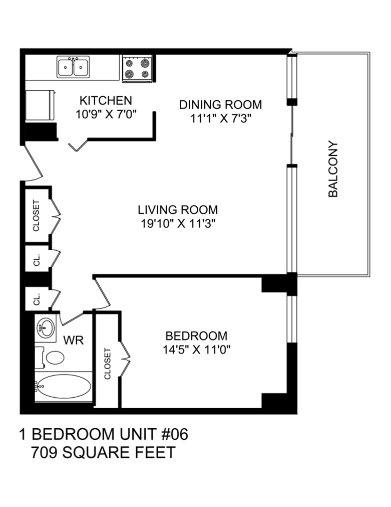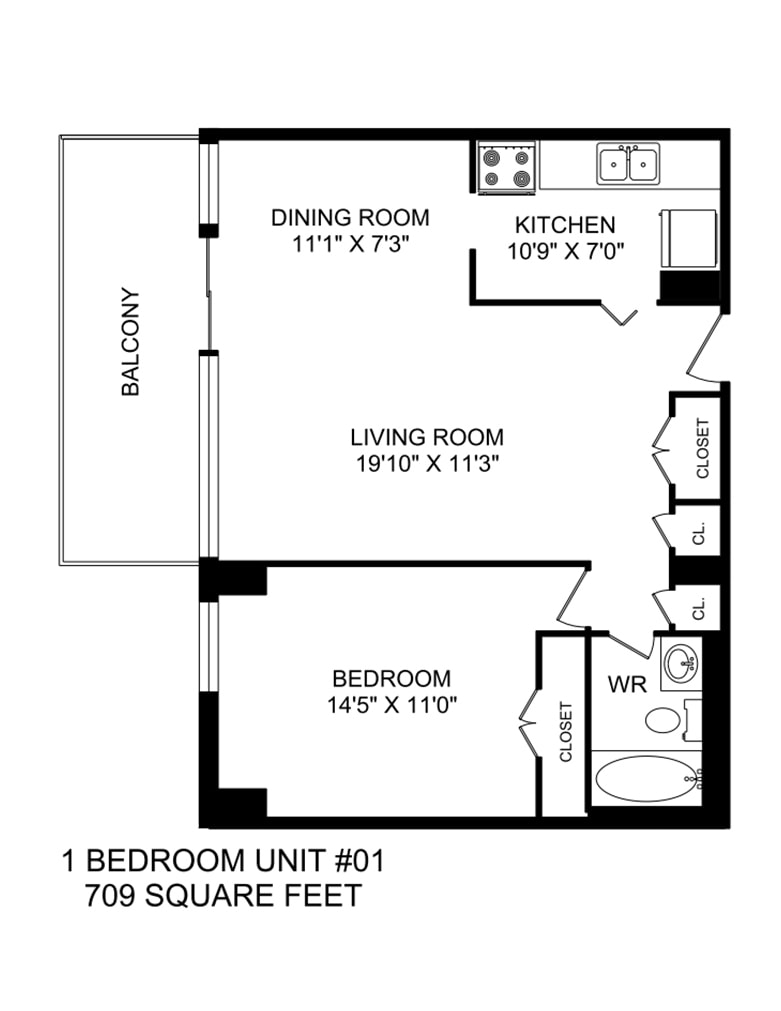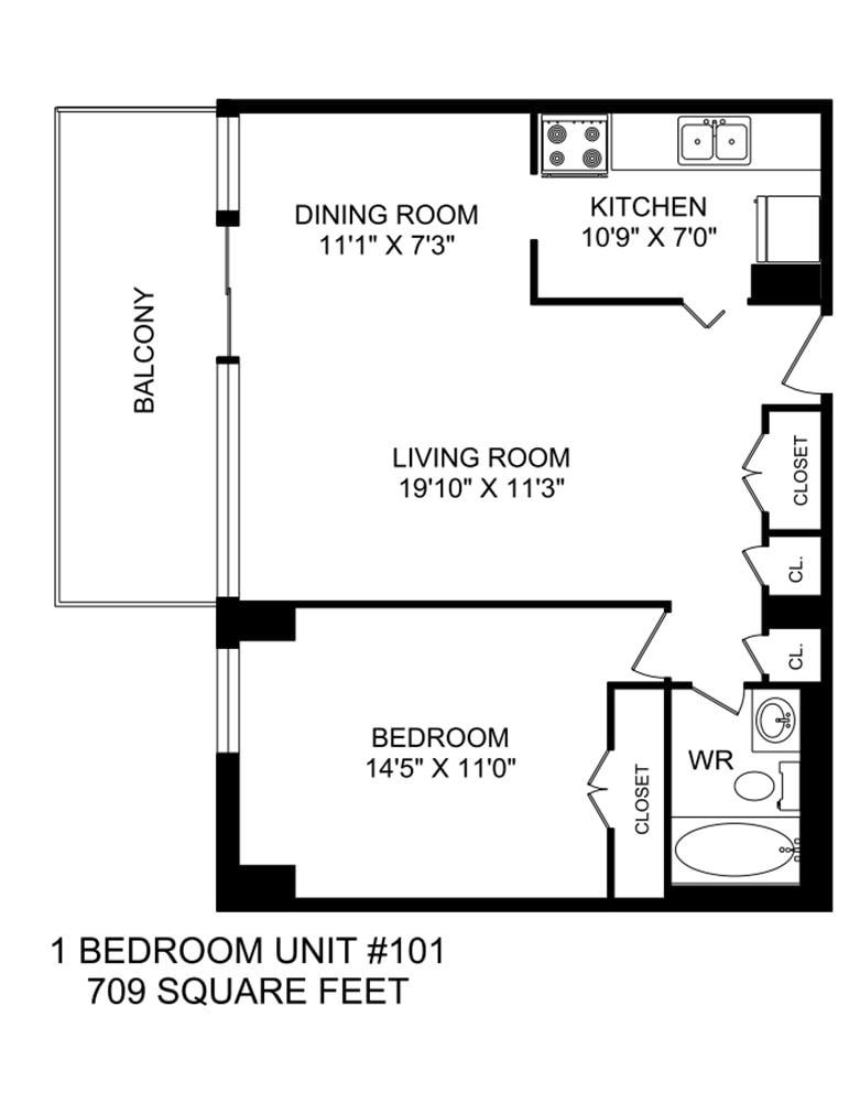 1 Bed, 1 Bath, 709 sq ftAvailable NowModel Gallery