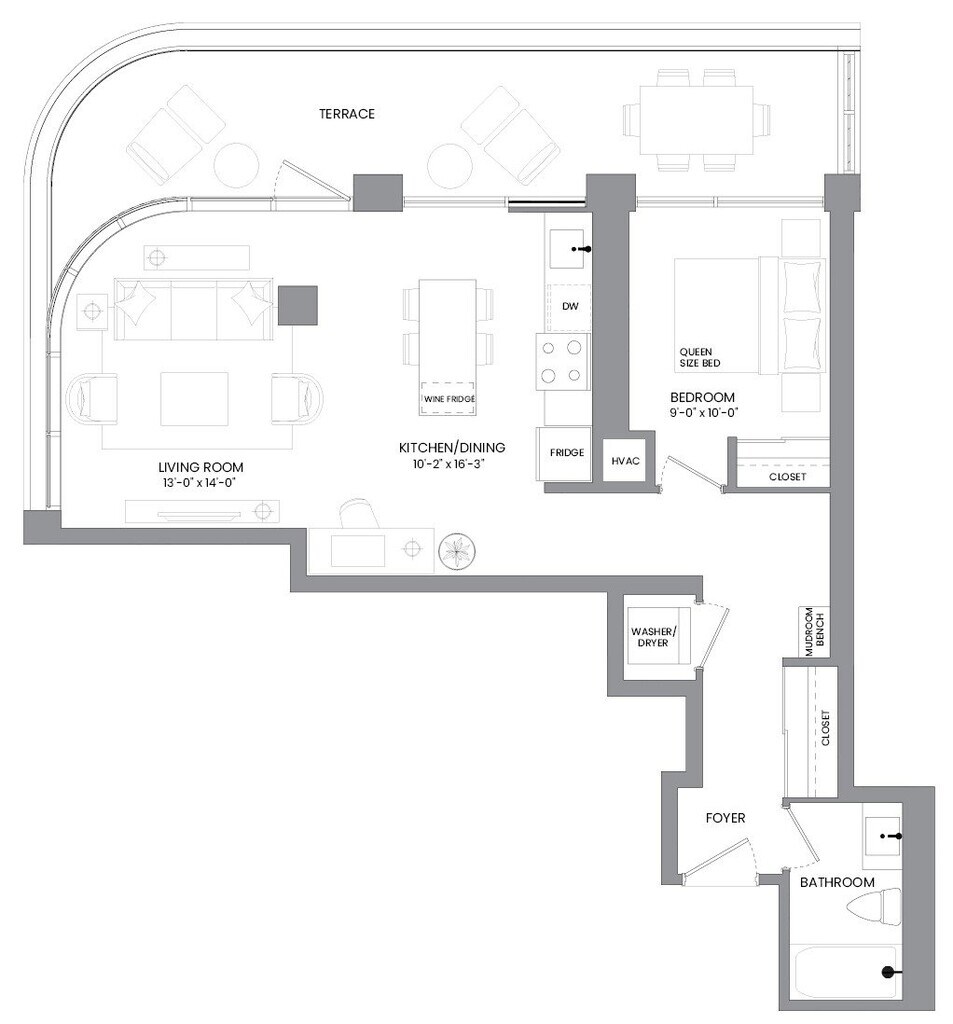 Flare III - Floorplan 1 Apartment Unit: E0315Apartment Model: Flare III$2,8501 Bedroom, 1 Bath, 492 sq ftAvailable NowFlare