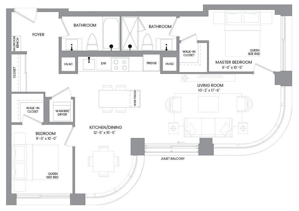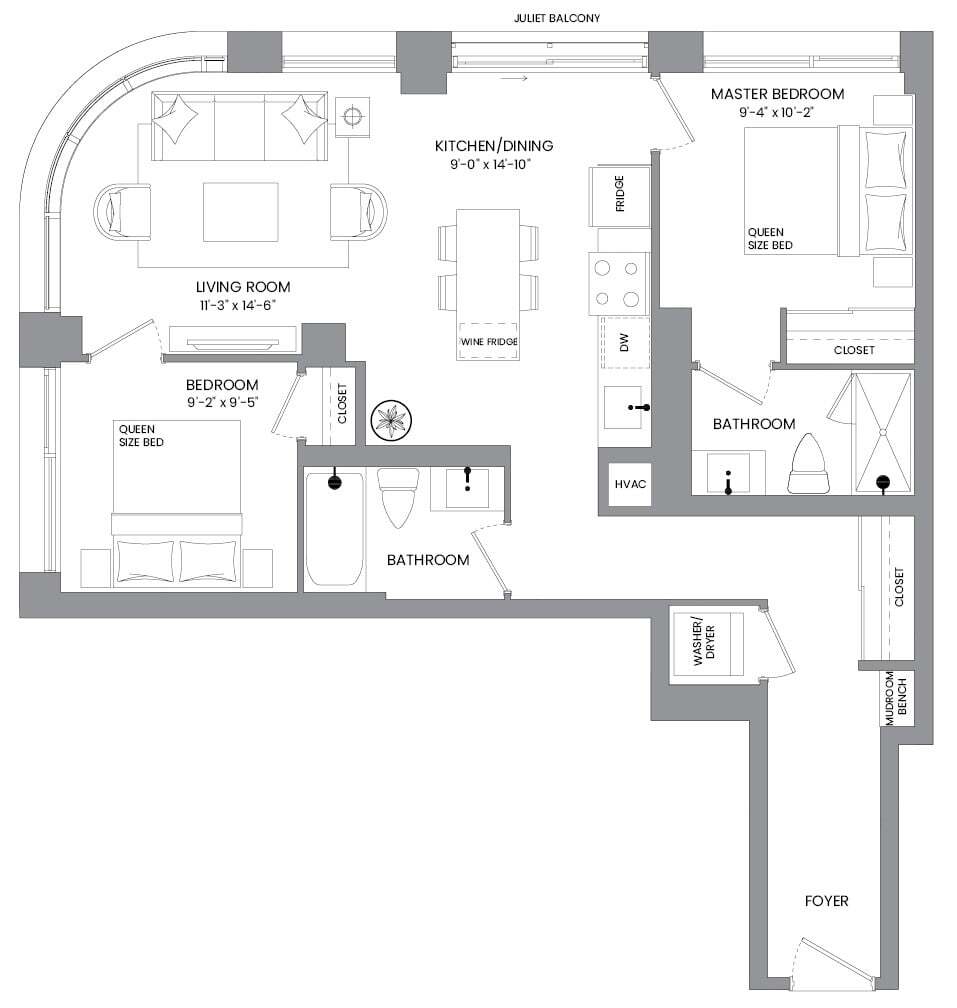 For a limited time, Elm-Ledbury is offering new residents up to two months free & 10 years of complimentary in-suite Wi-Fi by Rogers. Plus, furnished suites are now available on select units. Located at Queen & Church in Toronto's lushest node, the Garden District, Elm-Ledbury has been curated to create a hotel-quality rental living experience that is truly unique to Toronto. Elm-Ledbury has won Building Industry and Land Development Association's "Best New Community", "Best High Rise Building Design", and "People's Choice" awards for 2024. Suite Features: Free In-Suite Ignite Internet™ Gigabit by Rogers 1-Bedroom, 2-Bedroom & 3-Bedroom Floorplans Furnished Suites* Stainless-Steel KitchenAid® Appliances including a 5-Burner Range French Door Fridge, and Built-In Microwave Quartz Countertops and Slab Backsplash Wine Refrigerators* Imported Italian Muti Kitchen and Bath Cabinetry Kitchen Islands with Quartz Waterfall* Double Sink Vanities* Full-Size Paneled Dishwasher LED Undercabinet Lighting Wi-Fi Enabled NEST Thermostat In-Suite Full-Size Washer / Dryer 9 ft Ceilings Mudroom Bench Custom Millwork Upgraded Closet Organizers and Shelving LED Lighting Fixtures Matte Black Designer Plumbing Fixtures Porcelain Tile Flooring in Bathrooms Wall-Mounted Medicine Cabinet Shower Niches Soaker Tubs Solid Core Doors Keyless Smart Lock Entry Luxury Vinyl Tile Flooring Custom Window Coverings Walk-In Closets* Pet Friendly *In Select Suites Community Amenities: Complimentary & Exclusive Access to Amenities - No Maintenance Fees Raptors Basketball Court Rooftop Infinity Pool Commercial-Grade Fitness Centre Onsite Cleveland Clinic Virutal Healthcare Centre 10 DEAN Café & Bar F1 Race Car Simulator Ski / Snowboard Simulator Self-Serve Dog Spa Early Childhood Education by Bloomsbury Academy The Mews Retail Arcade Sports Lounge Screening Room Greenhouse Juice Fridge Onsite Fireplace Lounge & Dining Room Yoga Sanctuary and Peloton Spin Studio Wine Dispensary Bridge Lounge Sky Lounge & Bar Entertainment Kitchen Skyline Dog Run Rooftop BBQ Terrace with Gas Firepits and Pizza Oven Custom Art Collection 24-Hour Concierge Secured Underground Parking Keyless Controlled Access Pet Friendly 100% Smoke-Free – Breathe Easy 1Gig Common Area Wi-Fi by Rogers Smart Parcel Lockers Elm-Ledbury Mobile App Professionally Managed by Fitzrovia After-hours Security *Terms and conditions apply. Promotions are subject to change and discontinuance without notice.