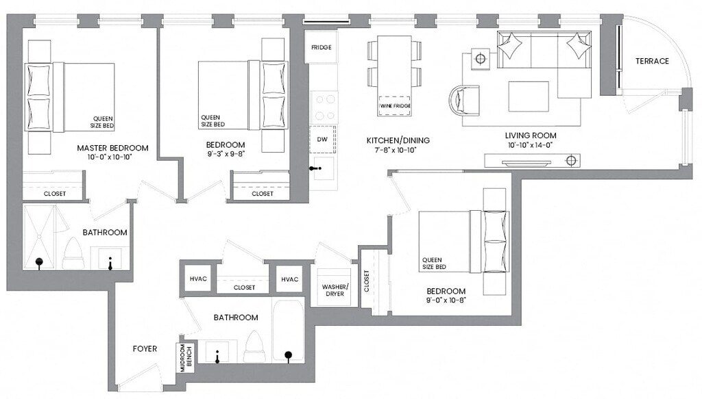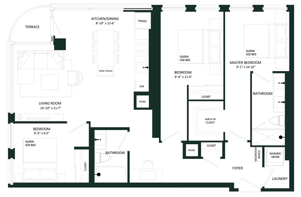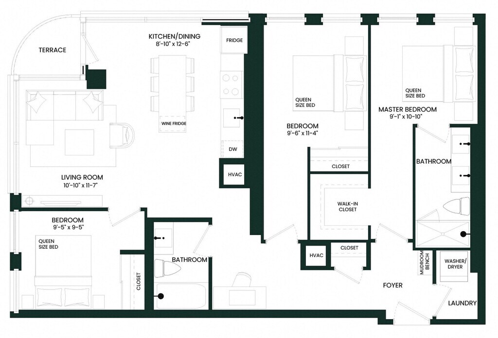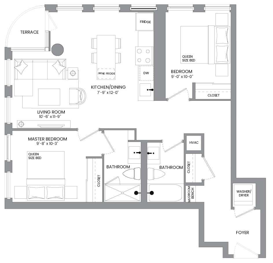 Apartment Model: Flare III$2,8501 Bedroom, 1 Bath, 492 sq ftAvailable Now![]()