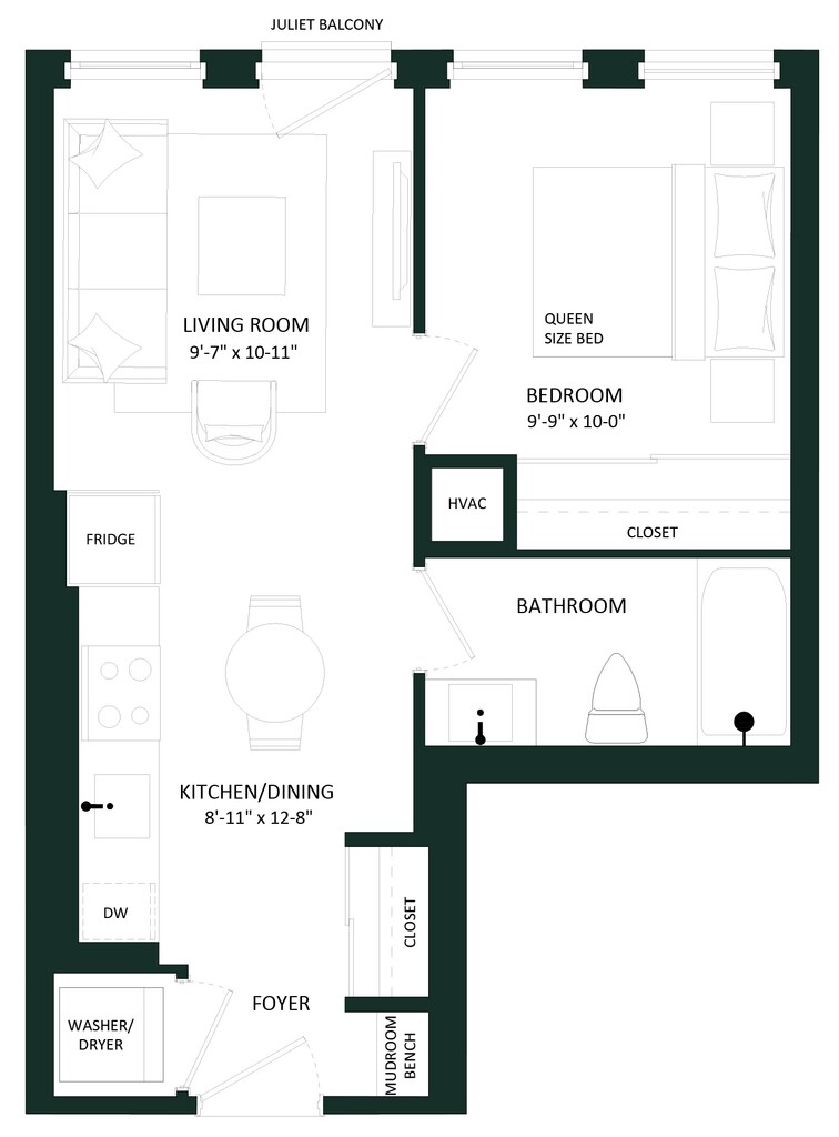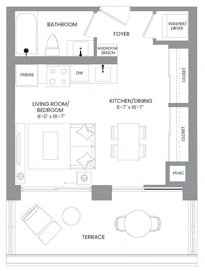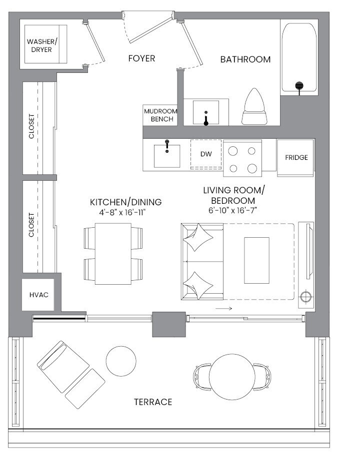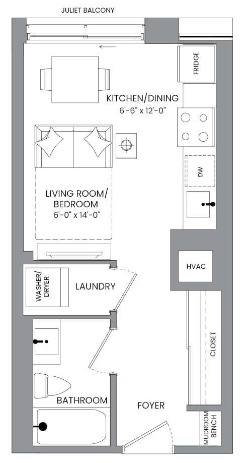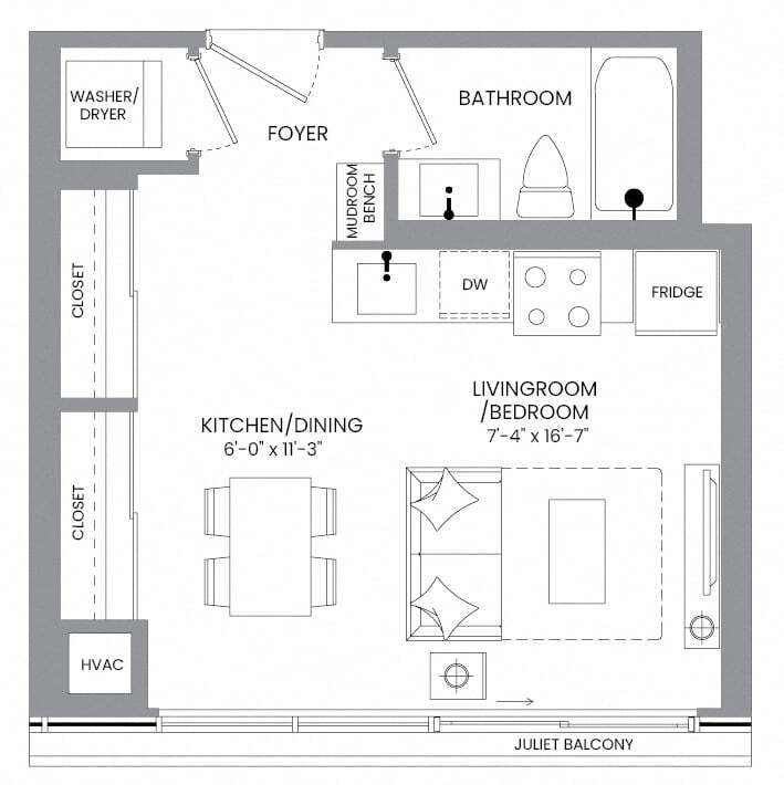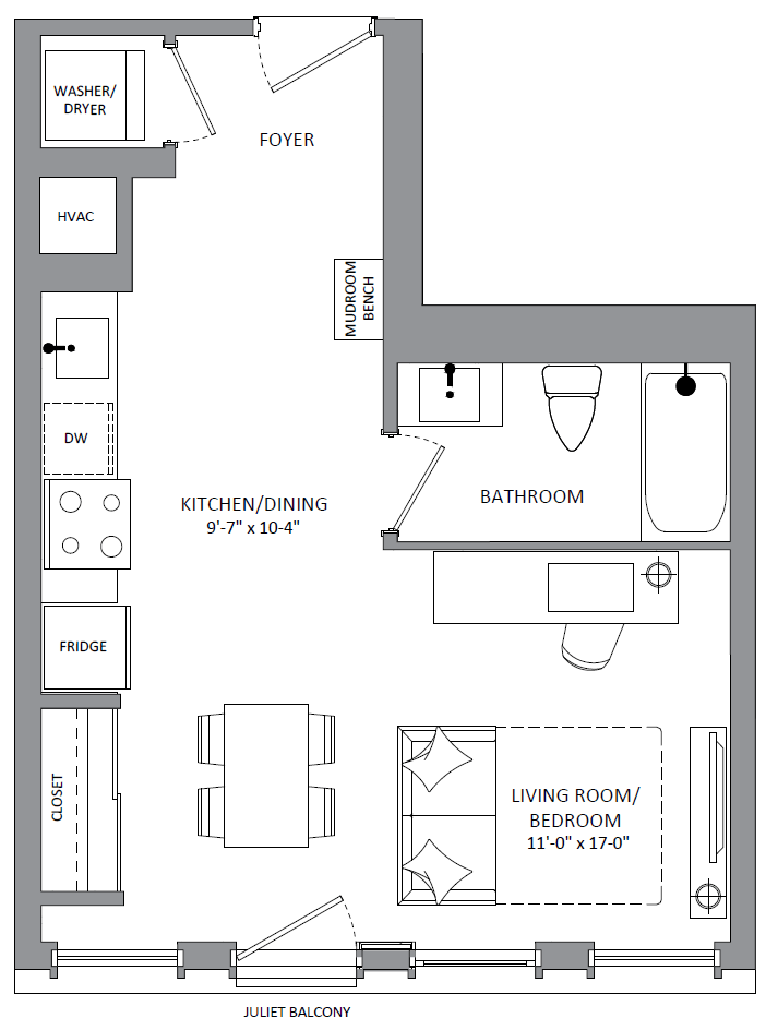 Studio, 1 Bath, 360 sq ftModel Gallery