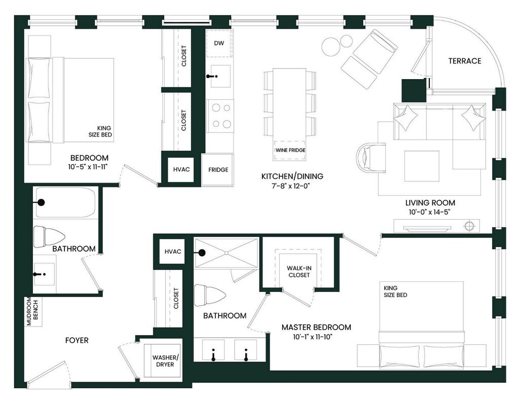 Apartment Model: VividCall For RatesStudio, 1 Bath, 458 sq ftUnavailable![]()