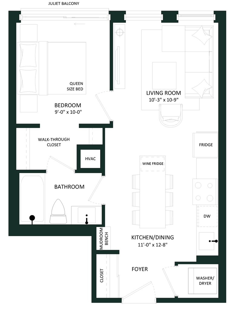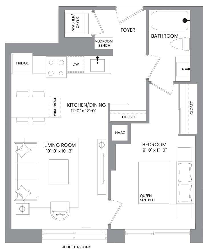 1 Bed, 1 Bath, 503 sq ftAvailable NowModel Gallery