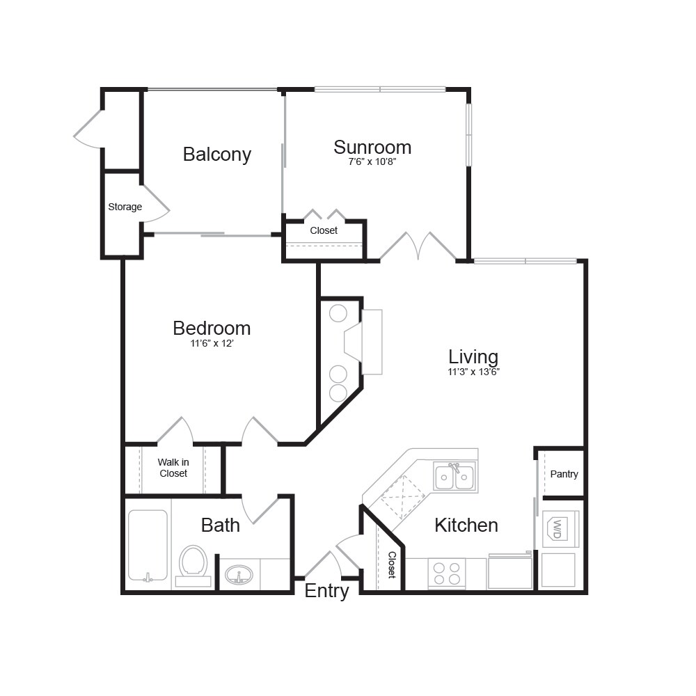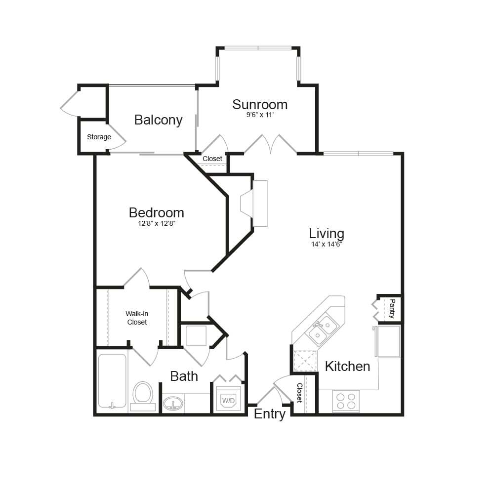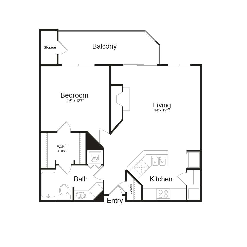 1 Bed, 1 Bath, 874 sq ftAvailable NowLargest 1 BedroomThis is the largest 1 Bedroom at this PropertyModel Gallery