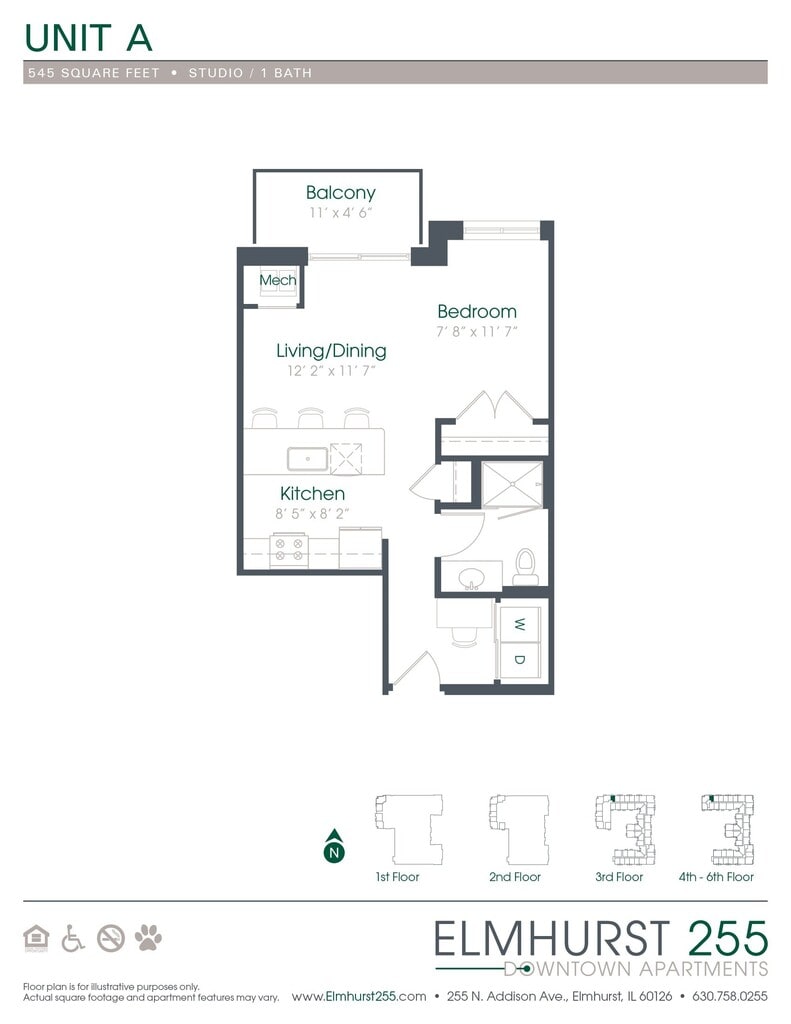 Apartment Model: ACall For RatesStudio, 1 Bath, 545 sq ftUnavailableA - Floorplan 1 1 Bedroom