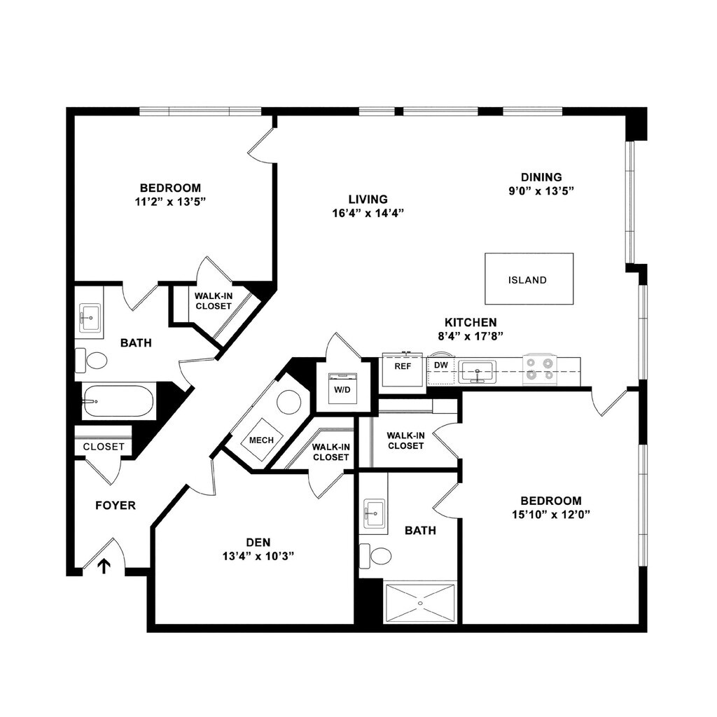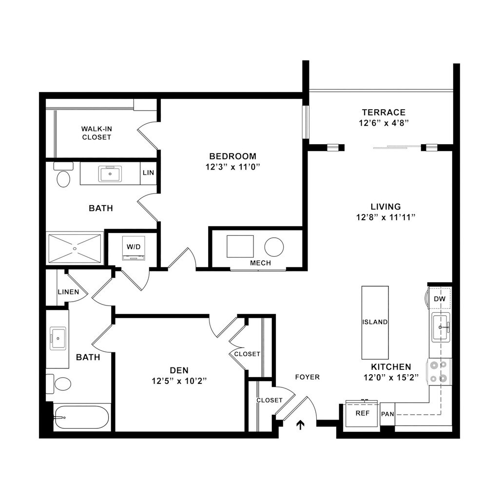 Apartment Model: 1D1 TerFrom $1,9271 Bedroom, 1 Bath, 732 sq ftAvailable Now![]()