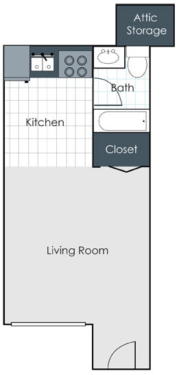 - Studio- Studio 1 Bath- From $750Studio, 1 Bath, 288 sq ftAvailable Now- Availability Details- Price - Availability Date - Unit - Sq Ft - $750 - Available Now - P00978 - 288 - Model Amenities and Features- Features- Air Conditioning