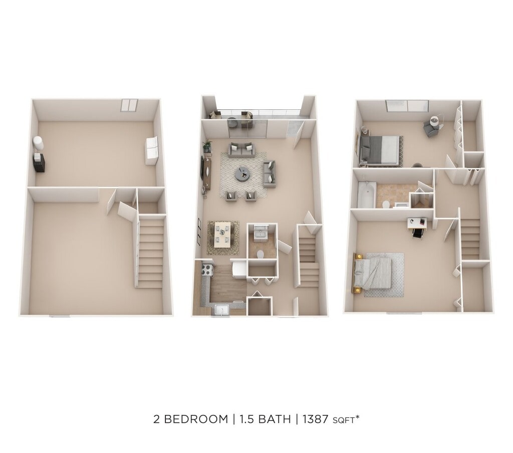 2 Beds, 1.5 Baths, 1387 sq ftAvailable NowModel Gallery
