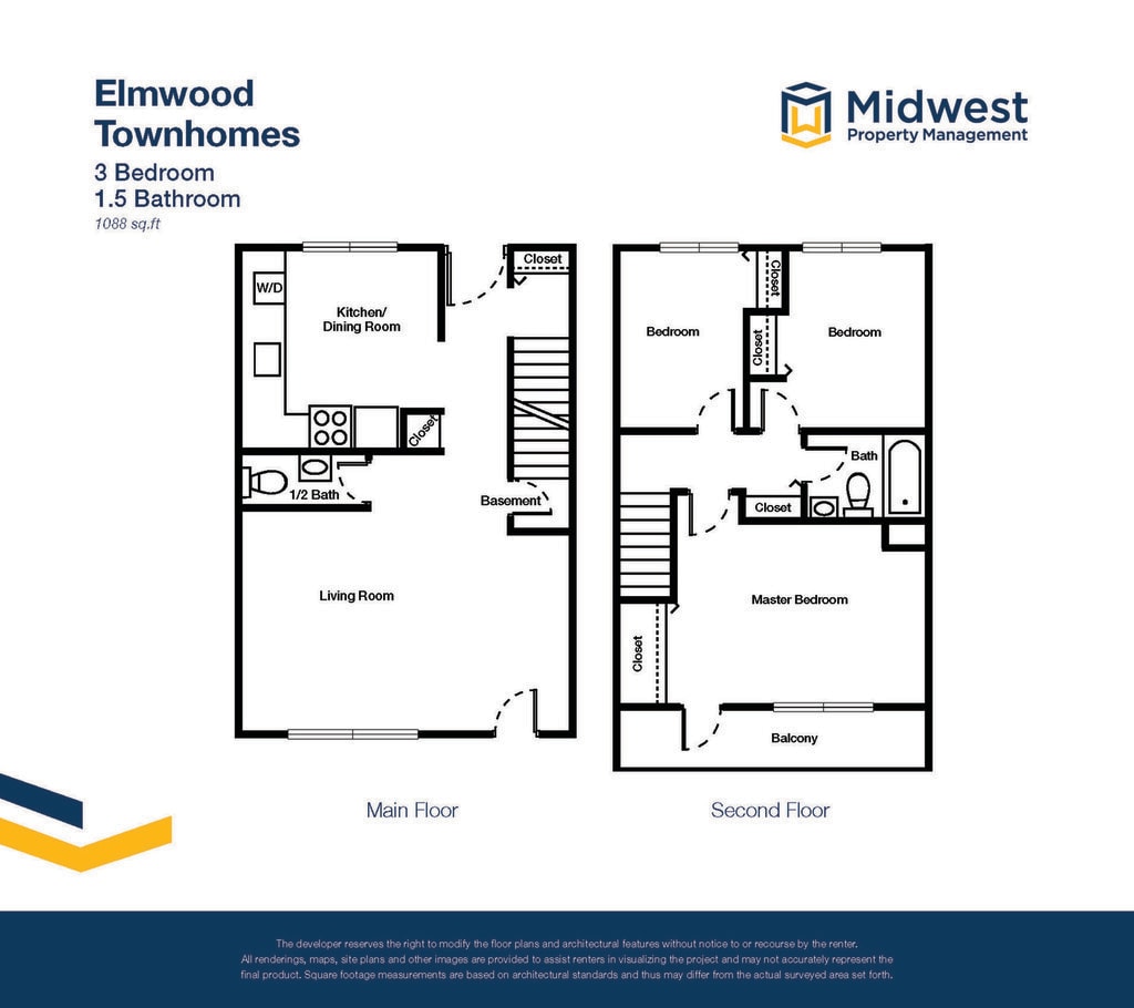 3 Bedroom Half Bath - Floorplan 6 Apartment Unit: 4-8503DApartment Model: 3 Bedroom Half Bath3 Bedroom, 1.5 Bath, 1088 sq ftAvailable Now3 Bedroom