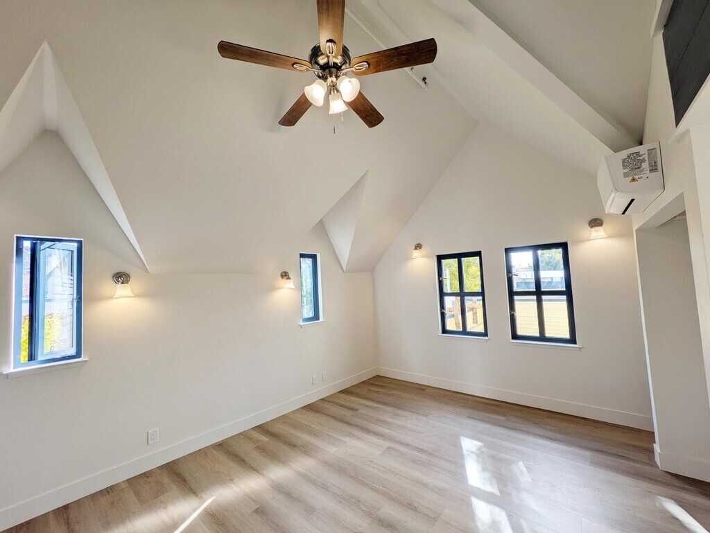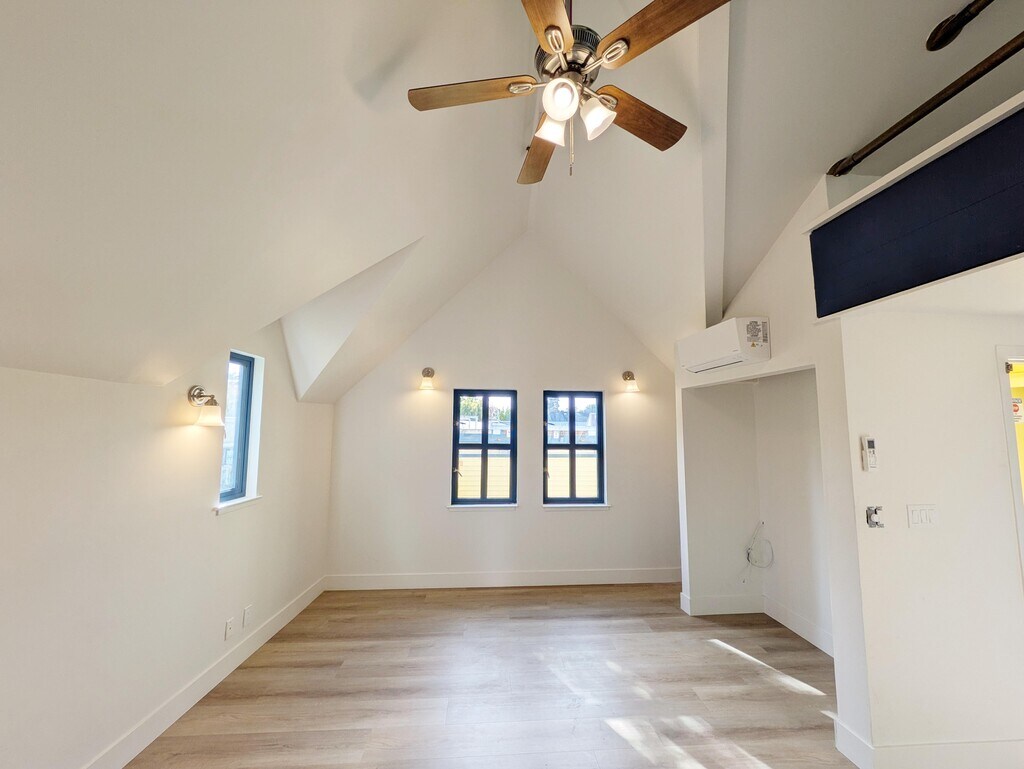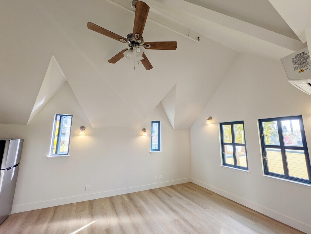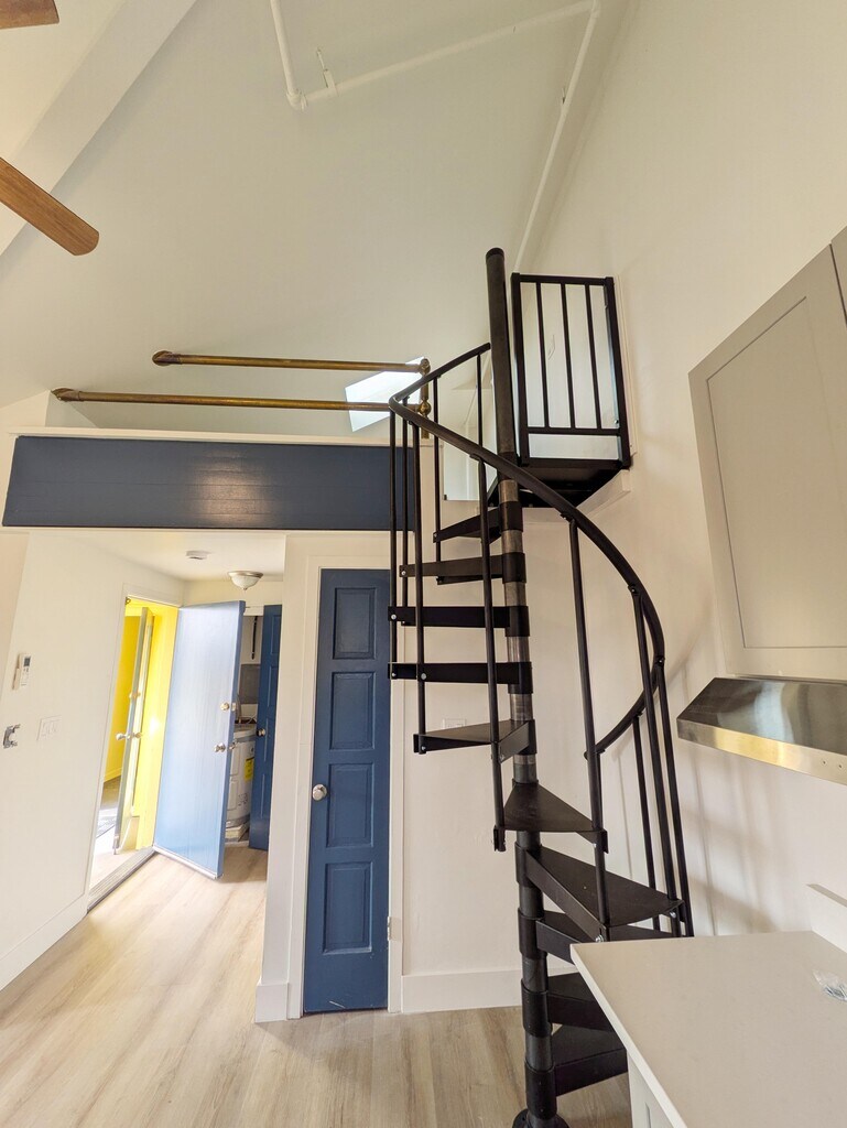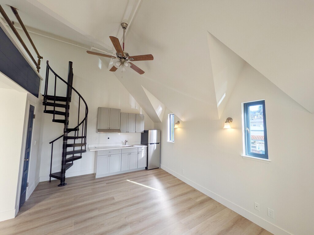 Live in the heart of it all! This beautifully renovated, 450 sq ft studio loft in Berkeley's Elmwood district blends modern comfort with an unbeatable, highly walkable location (Walk Score: 97). Highlights: - Full Renovation: Brand-new kitchenette, bathroom, flooring, paint, and lighting. - Modern Appliances: Stainless steel fridge, electric stove, and thermostat-controlled A/C & heat. - Unique Layout: Lofted sleeping area accessed by spiral stairs.