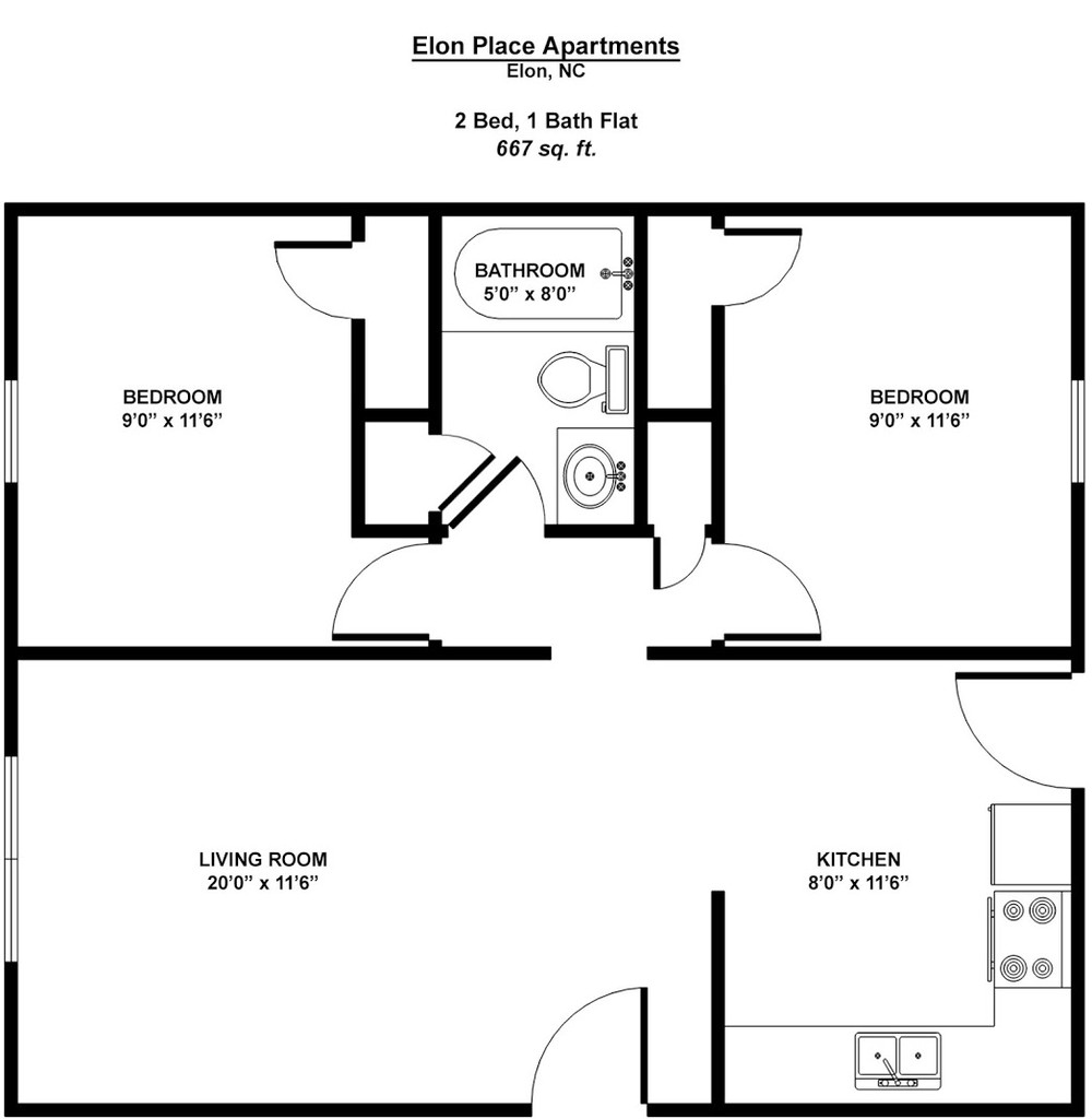 Call us today for rates on the 2 Bedroom to 2 options at Elon Place Apartments