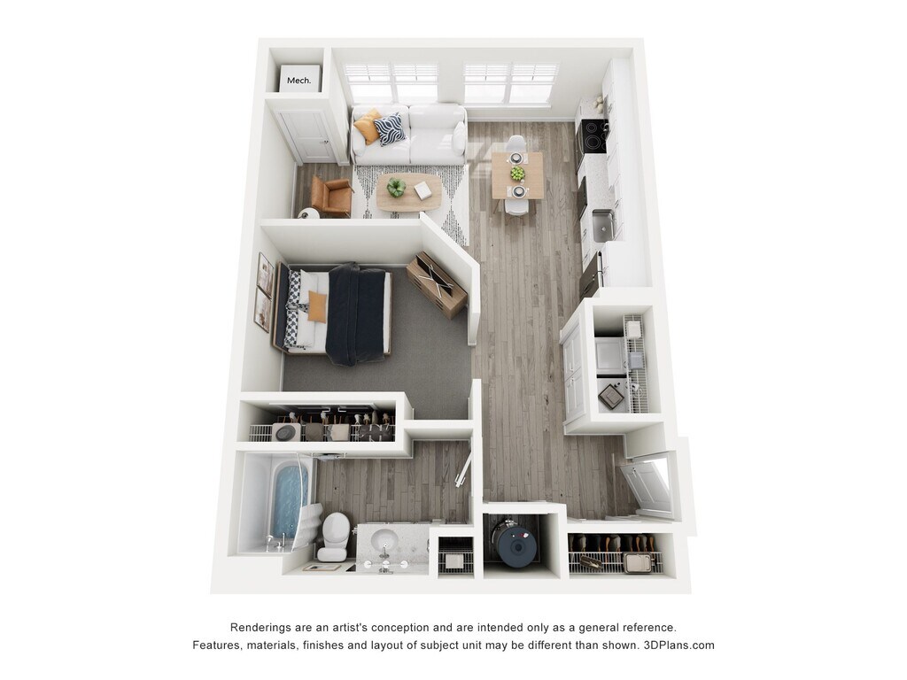 Studio, 1 Bath, 666 sq ftModel Gallery