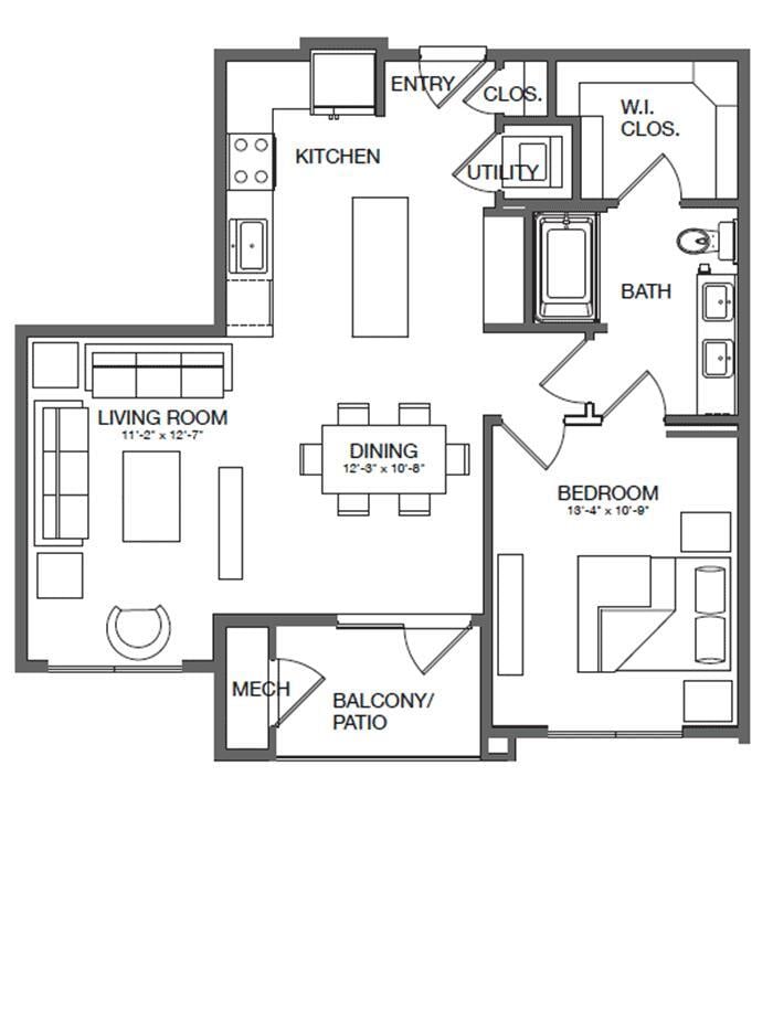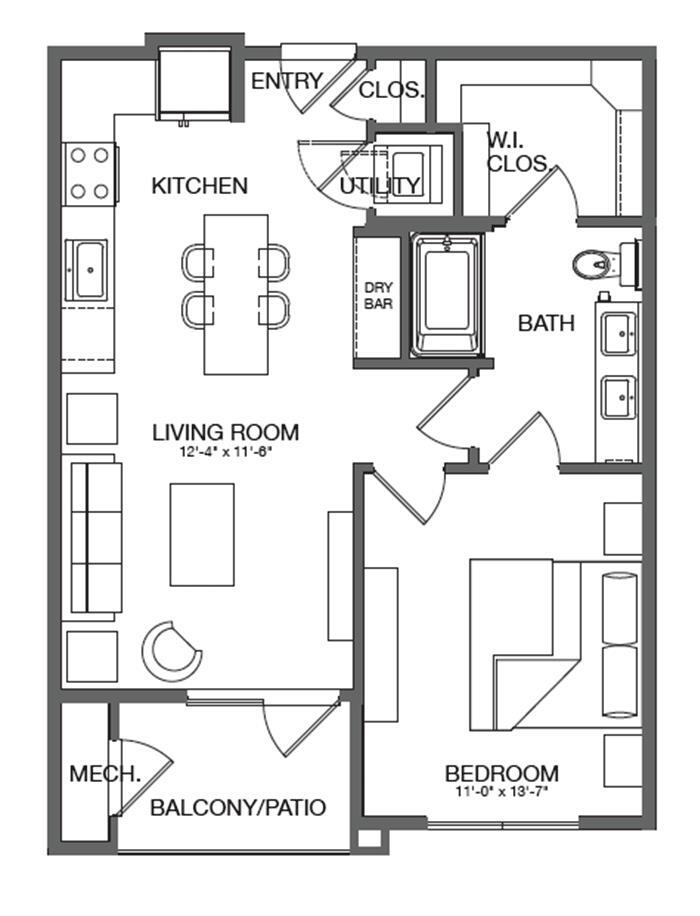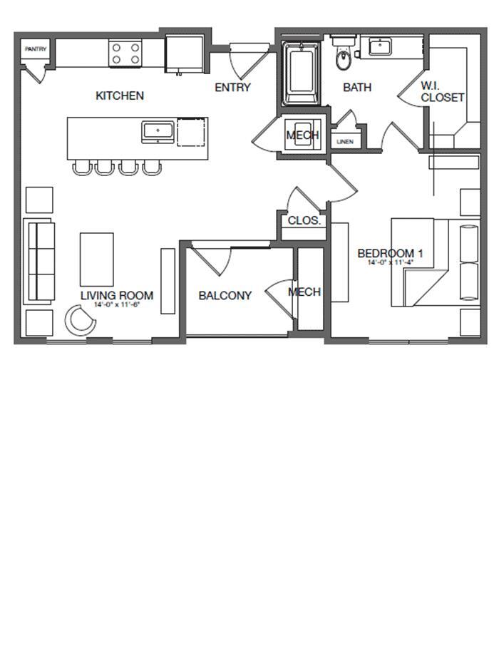 1 Bed, 1 Bath, 744-745 sq ftModel Gallery