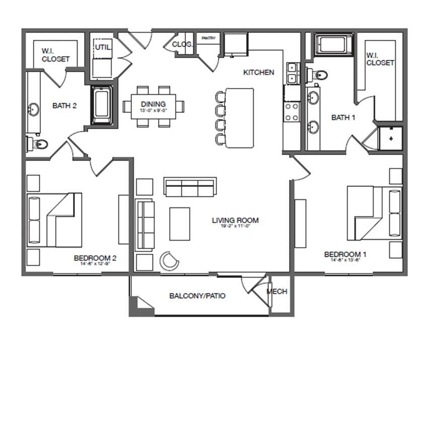 2 Beds, 2 Baths, 1565 sq ftLargest 2 BedroomThis is the largest 2 Bedroom at this PropertyModel Gallery