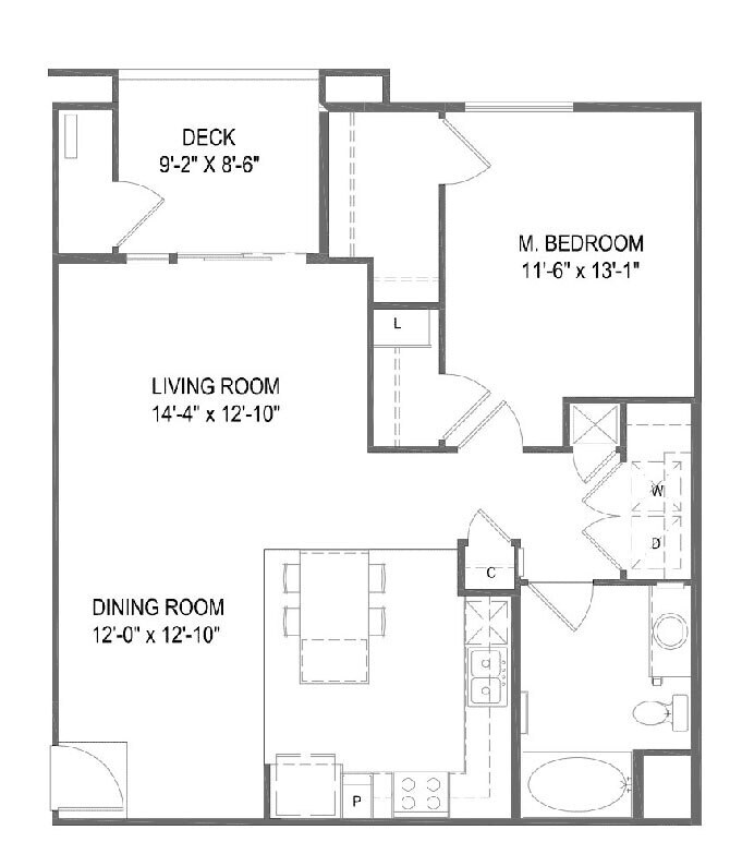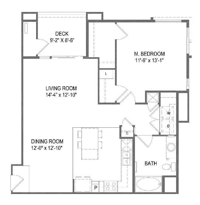 1 Bed, 1 Bath, 1114 sq ftLargest 1 BedroomThis is the largest 1 Bedroom at this PropertyModel Gallery