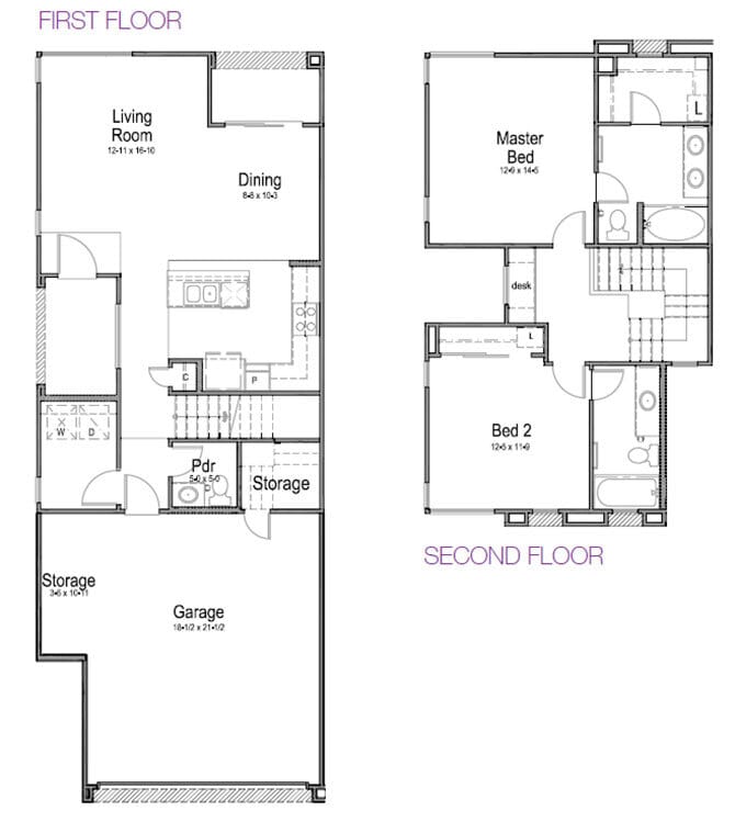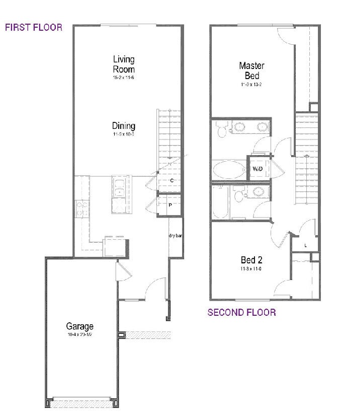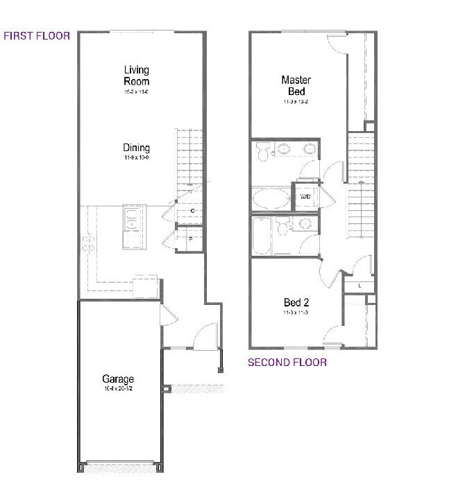2 Beds, 2.5 Baths, 1264 sq ftModel Gallery