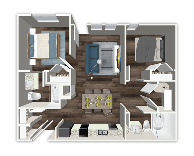2 Beds, 2 Baths, 895 sq ftAvailable NowModel Gallery