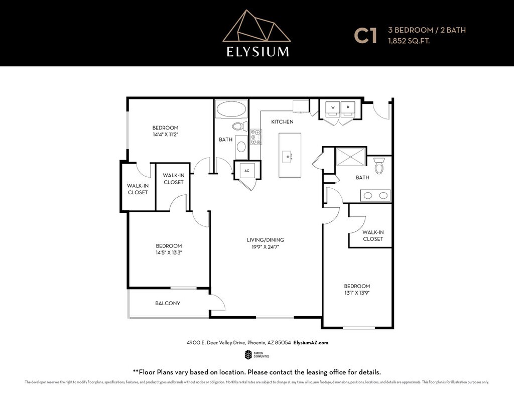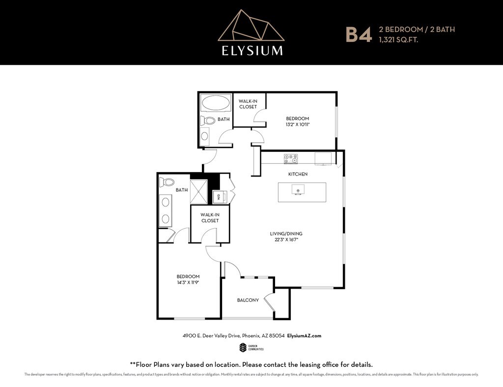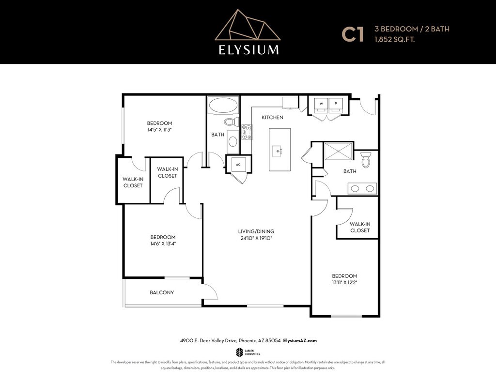 Elysium is located in the Desert View Neighborhood and 85054 Zip code of Phoenix, AZ. This community is professionally managed by Garden Communities California