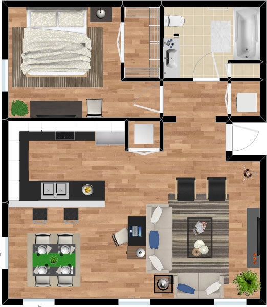 1 Bed, 1 Bath, 698 sq ftModel Gallery