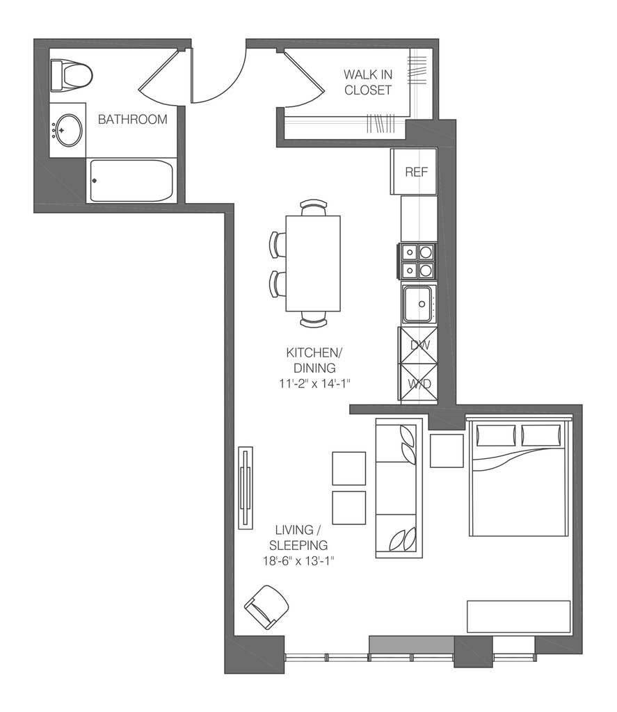 Studio, 1 Bath, 611 sq ftModel Gallery