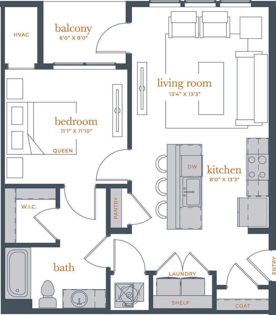 Apartment Model: A2.1$1,4371 Bedroom, 1 Bath, 774 sq ftAvailable Now![]()
