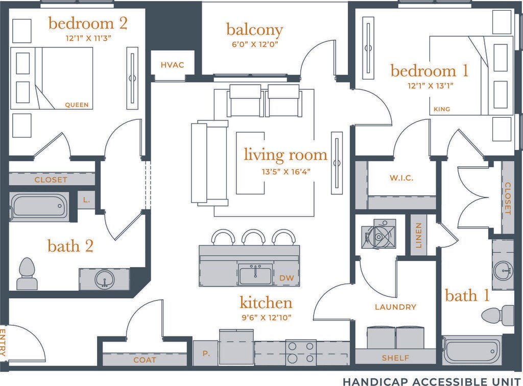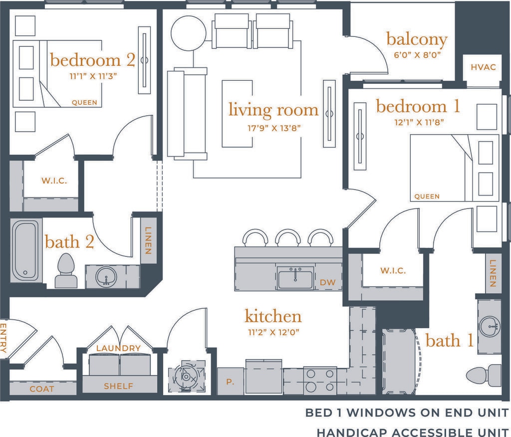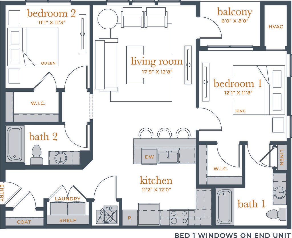 B1.1 - Floorplan 1 Apartment Unit: 12101Apartment Model: B1.1$1,6902 Bedroom, 2 Bath, 1098 sq ftAvailable NowFloorplan B2