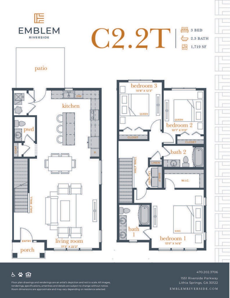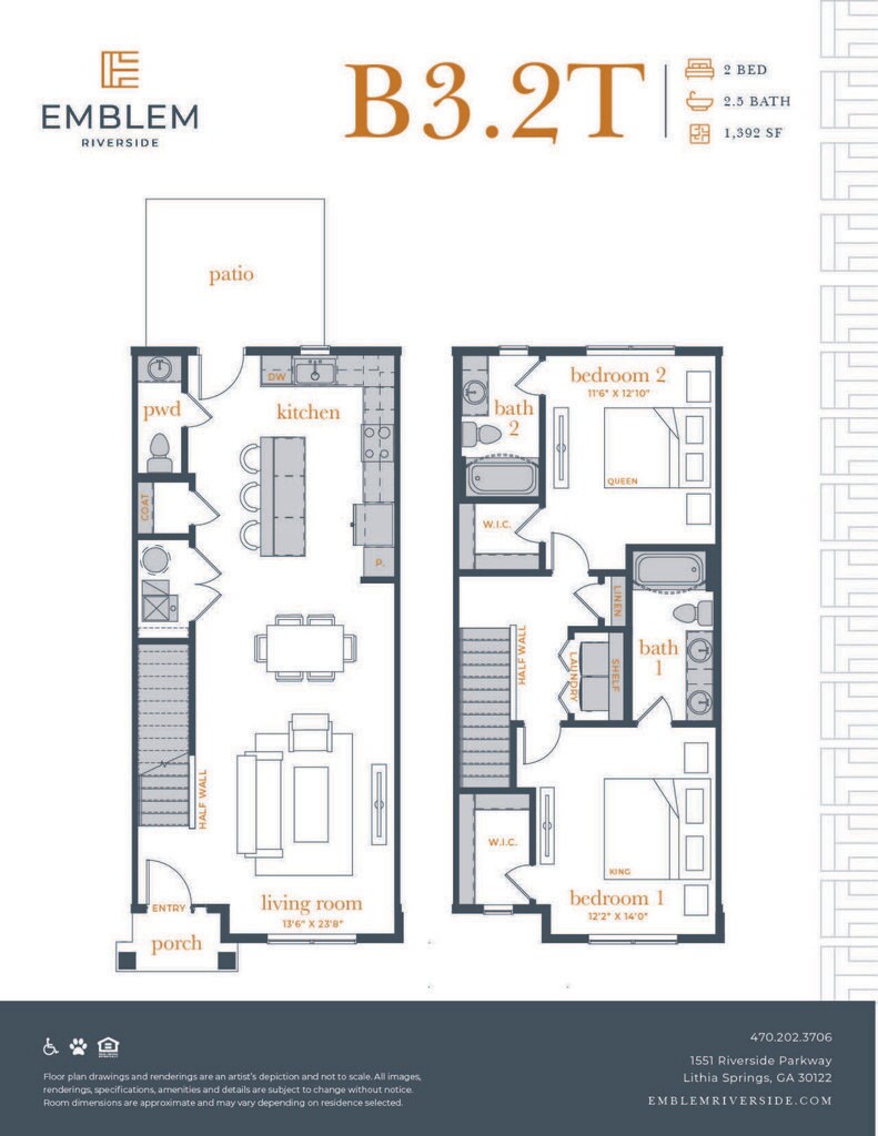 Brand new apartment community in Lithia Springs, GA offering 1, 2, and 3 bedroom apartments and townhomes. Open and airy floorplans with designer-inspired finishes, full stainless steel appliance packages, full-size washers and dryers, hardwood-style plank flooring and ceramic tile surrounds in walk-in showers. Thoughtfully curated amenity spaces, including a well-appointed social lounge, a state-of-the-art fitness center, and plenty of beautifully landscaped outdoor spaces. Conveniently located in Douglas County with easy access to downtown Atlanta, Atlanta-Hartfield airport and close to numerous shopping, dining and entertainment options. Embrace a remarkable living experience at Emblem Riverside.