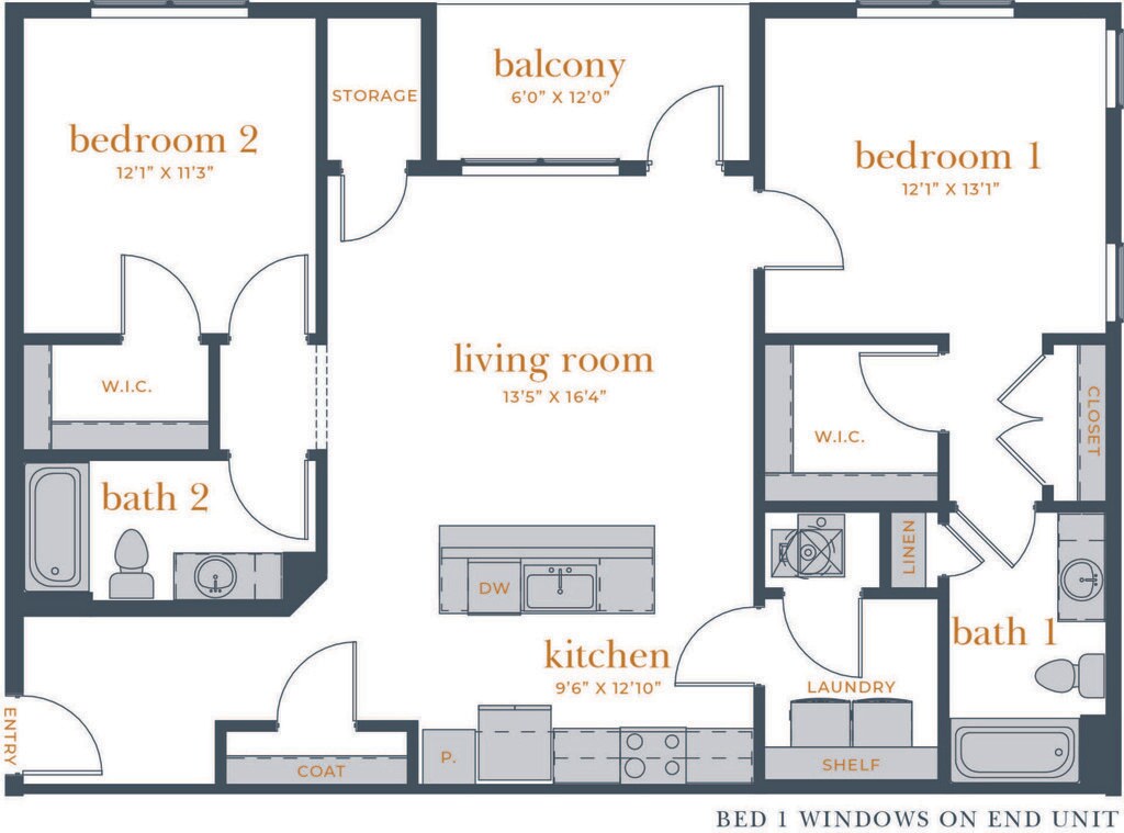 B2.1 - Floorplan 1 Apartment Unit: 6112Apartment Model: B2.12 Bedroom, 2 Bath, 1194 sq ftAvailable NowB2.2