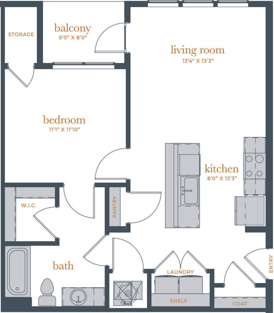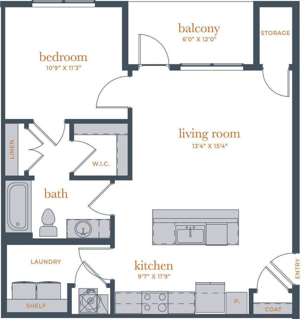 1 Bed, 1 Bath, 738-774 sq ftAvailable Dec 1Model Gallery