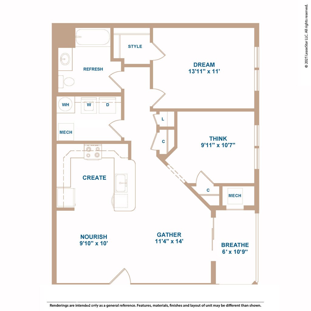 1 Bed, 1 Bath, 943 sq ftAvailable NowModel Gallery