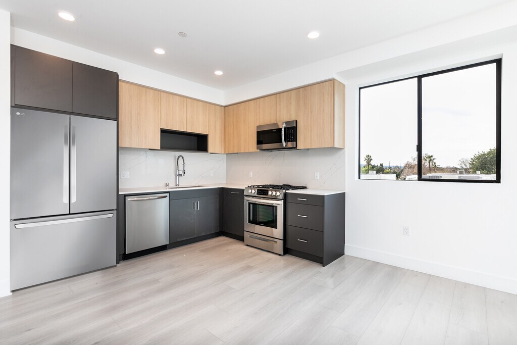 Built in 2023, this amazing 1300 sqf, 3 bedroom / 2 & ½ Bathroom spacious apartment is part of a modern design, brand-new, 2013 built 15 units building, which is a true architectural masterpiece in North Hollywood. Located just half a mile north from NoHo Arts District, and less than a mile from NOHO West. This ideal location is just steps to restaurants, bars, cafes, indie boutiques, live theatre and playhouses plus instant access to the 101, 134, 170 and the Metro Red Line. This unit features high ceiling and LED lighting , upscale & modern European style kitchens with flat panel cabinetry, all quartz counters and full quartz backsplash, stainless steel high-end appliances, in-home washer and dryer , hard surface flooring, Italian tiles in all bathrooms and large balcony. This amazing unit comes with 2 covered, gated parking in our underground garage. Electric car charging station and a storage space. Upscaled designer Elevator , controlled access gated entry and much more. Features: • 1300 square feet of lavish living space • Open -space unit layout • High ceilings • Central A/C • Specious private Balcony • Hardwood Flooring throughout • All LED lights throughout the apartment • New double paned windows • Modern Kitchen cabinets • Quartz Counters in Kitchen and Bathrooms • High-end Stainless Steel appliances including Fridge, Gas Range, Micro, Dishwasher • In-unit dryer, in-unit washer • 2 parking spots in our gated underground parking is included in your rent • EV charging station. • Large storage area • Upscaled designer Elevator • Controlled access • Gated entry