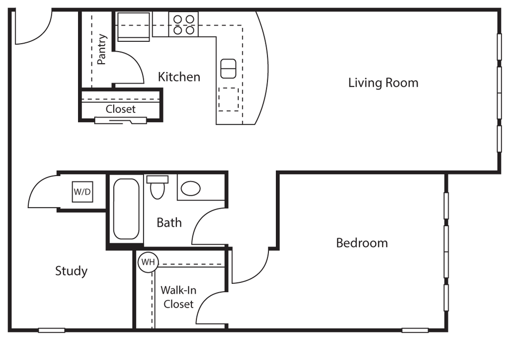 Traditional 1 Bed 1 Bath - Floorplan 1 1 Bed 1 Bath + Study