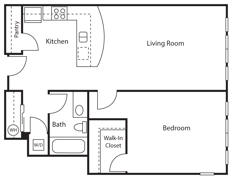 1 Bed 1 Bath + Deck - Floorplan 1 Traditional 1 Bed 1 Bath A
