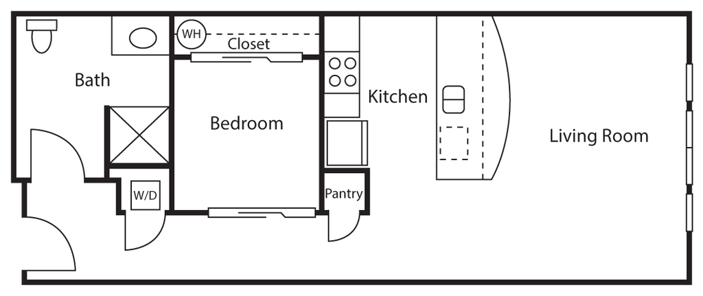A7 Open 1 Bed 1 Bath A - Floorplan 1 1 Bed 1 Bath + Deck