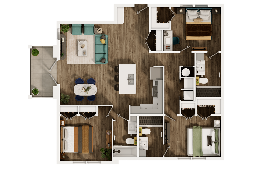 Type 2D - Floorplan 1 Apartment Unit: 4-204Apartment Model: Type 2D$1,6502 Bedroom, 2 Bath, 1044 sq ftAvailable November 21, 2025Type 2B