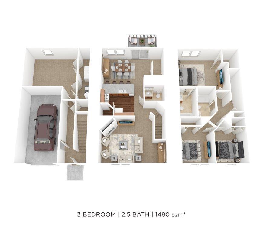 Apartment Model: Three Bedroom 2.5 Bath Townhome- 1480 sqftFrom $2,4403 Bedroom, 2.5 Bath, 1480 sq ftAvailable December 3, 2025![]() - Three Bedroom 2.5 Bath Townhome- 1480 sqft - Floorplan 1 ![]() - Three Bedroom 2.5 Bath Townhome- 1480 sqft - Floorplan 2 Apartment Unit: AM1141Apartment Model: Three Bedroom 2.5 Bath Townhome- 1480 sqft$2,4403 Bedroom, 2.5 Bath, 1480 sq ftAvailable December 3, 2025- Three Bedroom 2.5 Bath Townhome- 1480 sqft3 Beds, 2.5 Baths, 1480 sq ft- Model Gallery- Floorplans- Availability Details- Availability Date - Unit - Sq Ft - Call for Availability - Three Bedroom 2.5 Bath Townhome- 1480 sqft - 1480 sq ft - Model Amenities and Features- Features- Air Conditioning