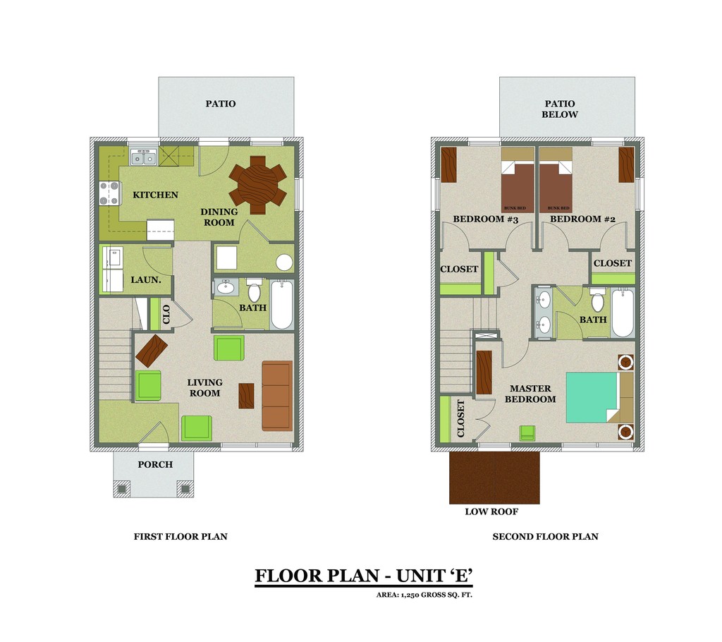 2 Bedroom Townhome - Floorplan 1 3 Bedrooms