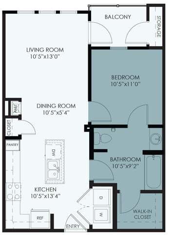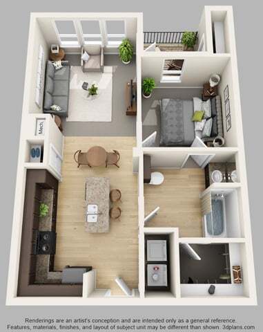 1 Bed, 1 Bath, 619 sq ftModel Gallery
