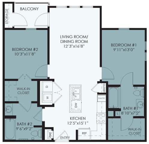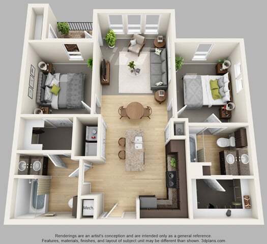 2 Beds, 2 Baths, 869 sq ftAvailable NowModel Gallery