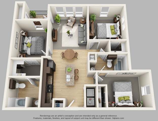 3 Beds, 2 Baths, 999 sq ftAvailable NowModel Gallery