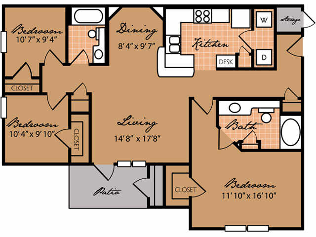 Apartment Model: The 754From $9991 Bedroom, 1 Bath, 754 sq ftAvailable Now![]()