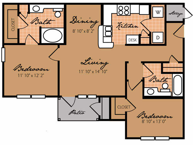 2 Beds, 2 Baths, 950 sq ftAvailable NowCheapest 2 BedroomThis is the cheapest 2 Bedroom at this PropertyModel Gallery